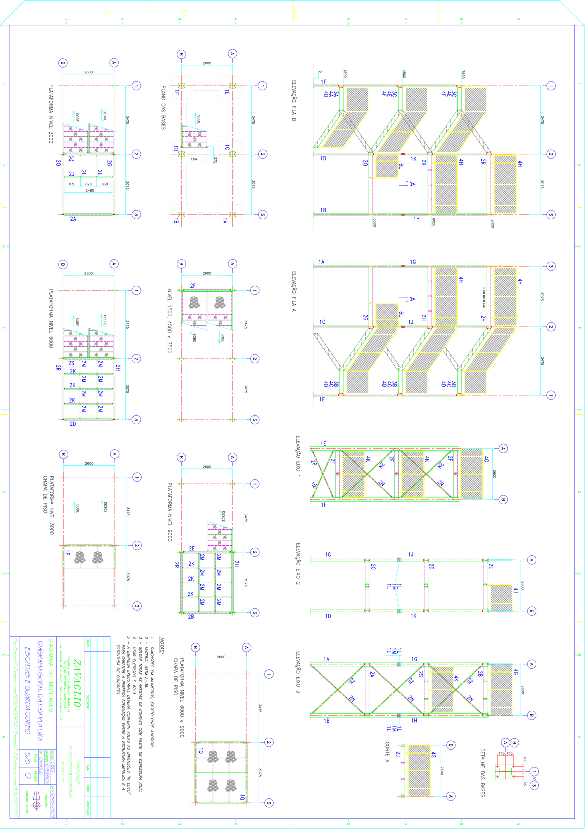 Estrutura de suporte da calha do toboágua e plataforma de acesso.